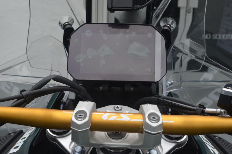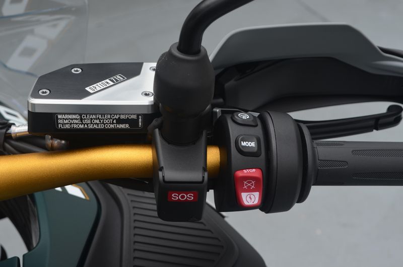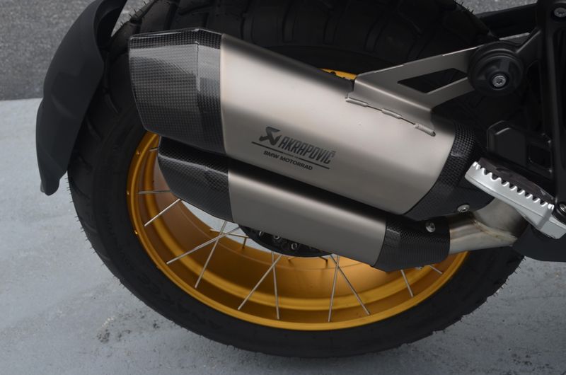 It has Headlight Pro, Riding Assistant, Adaptive Height Control Comfort, High Windshield, Windshield Electrically Adjustable, Chrome Exhaust Pipe, GPS Preparation, Aluminum Pannier Mounts, Center Stand, Topcase Carrier, Gear Shift Assist Pro, Ride Modes Pro, Sports Brake, Comfort Rider's Seat, Comfort Passenger Seat, Forged Enduro Wheels, 719 Billet Pack, and Double Silencer.